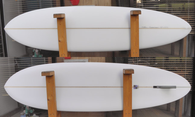 私のニューボードのシェイプが出来上がりました…と言いつつ、撮影したデジカメをシェプルームに忘れてきてしまったので、同じアウトラインでシェイプした他のボードの画像でお話しを進めさせていただきます。