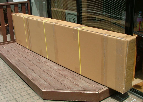 次に、厚手のビニールでつくられたバブルパック厚み約5mm(プチプチですな)をレールで重なるように、デッキとボトム側から。幅が広いのでほぼ全体を二重に包むことができます。