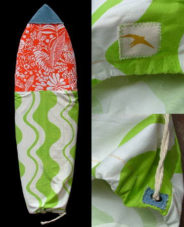 デザイナーでありアーティストであるアンドリューの奥様が作ったボードケース。これにフィッシュを入れて部屋に置けばサーフボードがオブジェに変身。クルマの助手席でもカッコよさそう。ハードなトランスポーターとしてではなくそんな使い方が良さそうです。欲しい人はここから