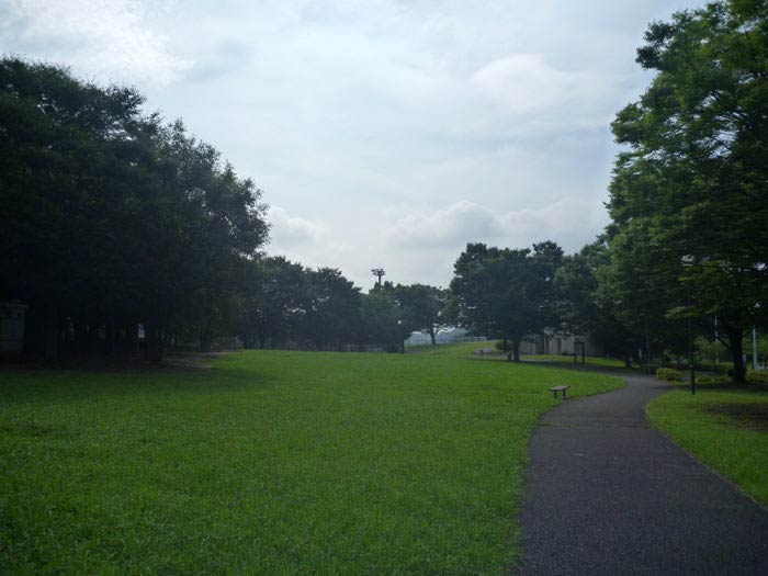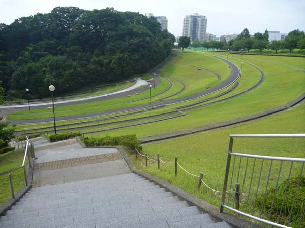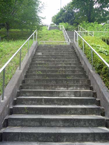 ここです。向こうに見えるこんもりと樹が茂っている脇に長い階段が見えます。目の前の階段を降りて、向こう側を登っての周回コース。なんでロッキーかは、ちょっと古いですが…。