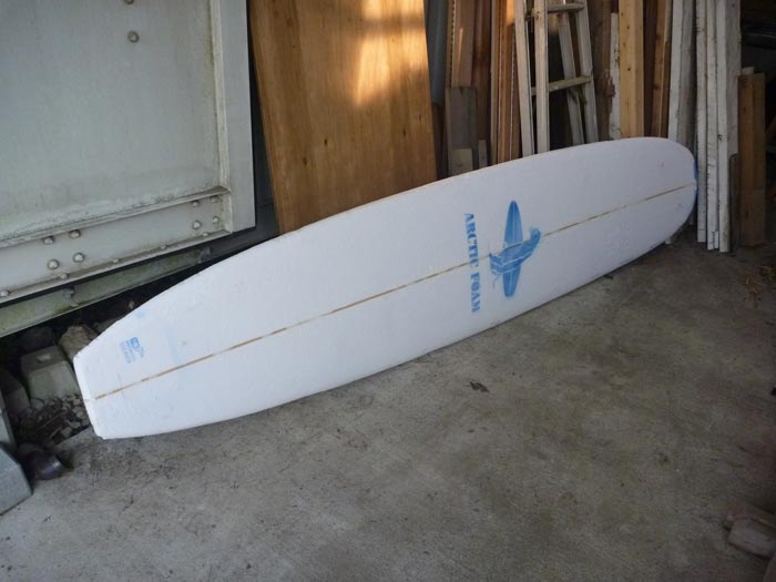 昨日はずっと9’6”の納戸色に乗っていました。このロングボードの一番の面白さはフラットなロッカーと大きなDフィンです。