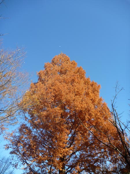 メタセコイアの色が変わると、秋ももう終わりです。このラスティックなオレンジもサーフボードに使うときれいです。どのボードだか分かりますか?ヒントはシングルフィン。