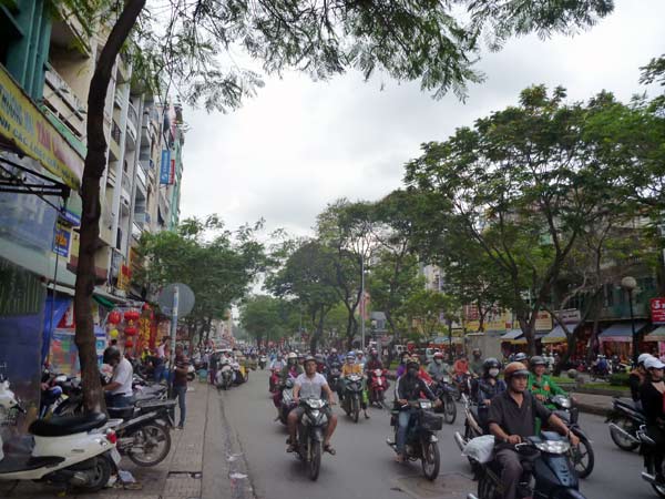 道を渡るのも最初は一苦労、というより命がけ。信号なんか守ってくれない。青信号を渡っている目の前を、信号って何?とばかりに走り抜けるバイク。向こうがその気ならこっちだってと、いつのまにかうまくバイクとクルマのあいだをすり抜けて道路を横断できるようになっていたりするから面白いもの。