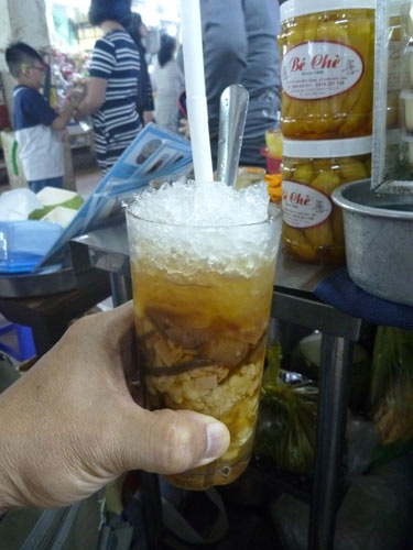 チェー、という飲み物。マメ、タピオカ、なんかの実、ハーブ、はては昆布までいろんな種類があるのですが、どれもこれも美味しい。これは昆布とハトムギが入ってます。