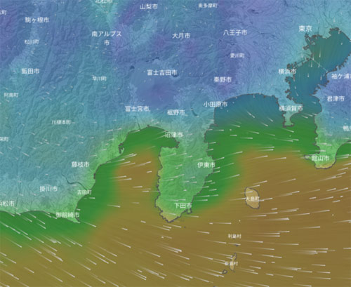西風が一向に収まる気配がありません…でしたが、金曜日に沿岸の風が北寄りに変わる気配になってきました。最初は午後遅くだったのがだんだんと早い時間になってきました。上の画像は金曜の午前9時ですが、予報の変わり具合から見てもう少し早く北(オフ)に変わる可能性は十分あります。要、チェックですね。
