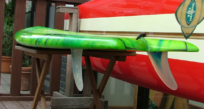 ショップのオープンは2001年。それ以来、ロングボードをベースに、フィッシュ、ボンザー、シングルフィン、ニーボード、パイポとさまざまな種類のサーフボードを作り、試してきました。
