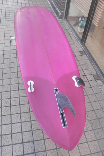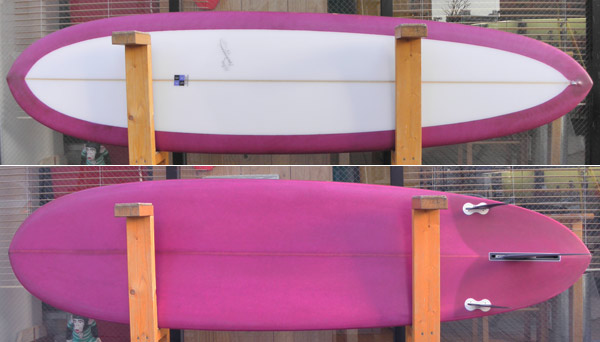 これぞミッドレングス、というボードが出来上がりました。カラーリングもばっちりの、7’3”TIKIモデルです。