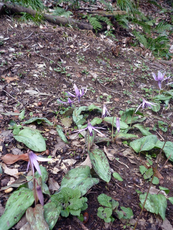 いつものトレイルの脇の斜面を降りた下は保全緑地になっているのですが、その斜面にこんな野草を見つけました。カタクリの花です。初めて見ました。