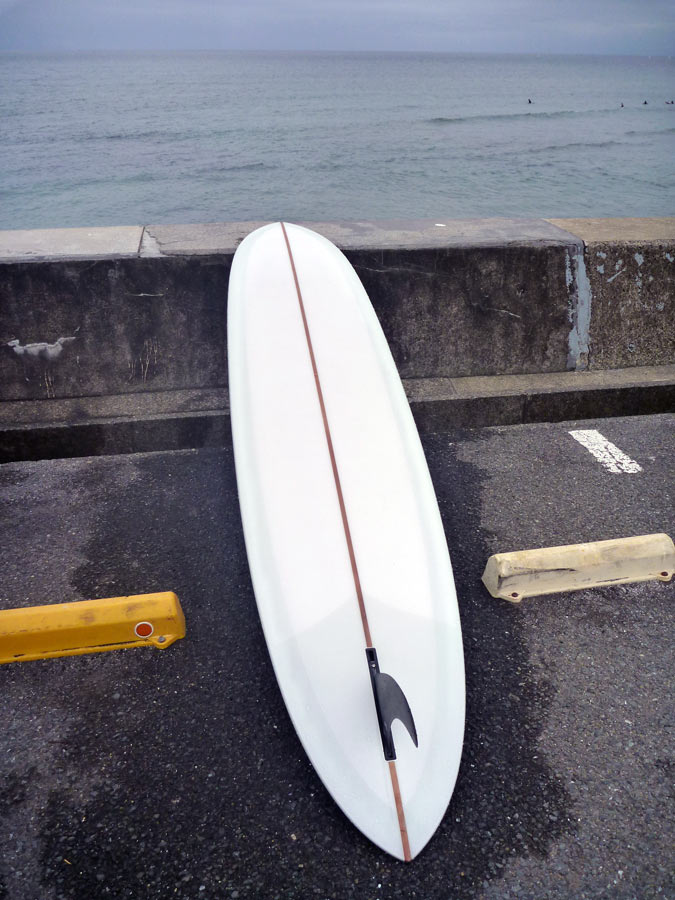 そう言えば以前、9.6で同じラウンドピンテールのクリステンソンのC-HAGに乗っていたときと同じ感じかもしれません、というのはたった今思いついたこと。C-HAGで使っていたのは、9.75のグリノウフィン。ロングにこのフィンは好きじゃないって、昔書いたと思います。思い出しました。