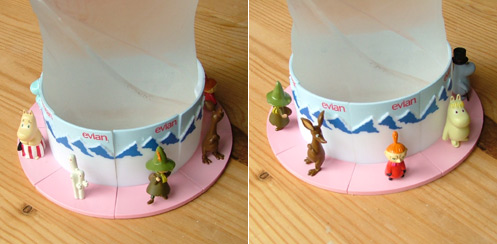 いつも飲んでいるエヴィアンの1リットルボトルに付いてくるムーミンのフィギュアが8体全部そろいました。