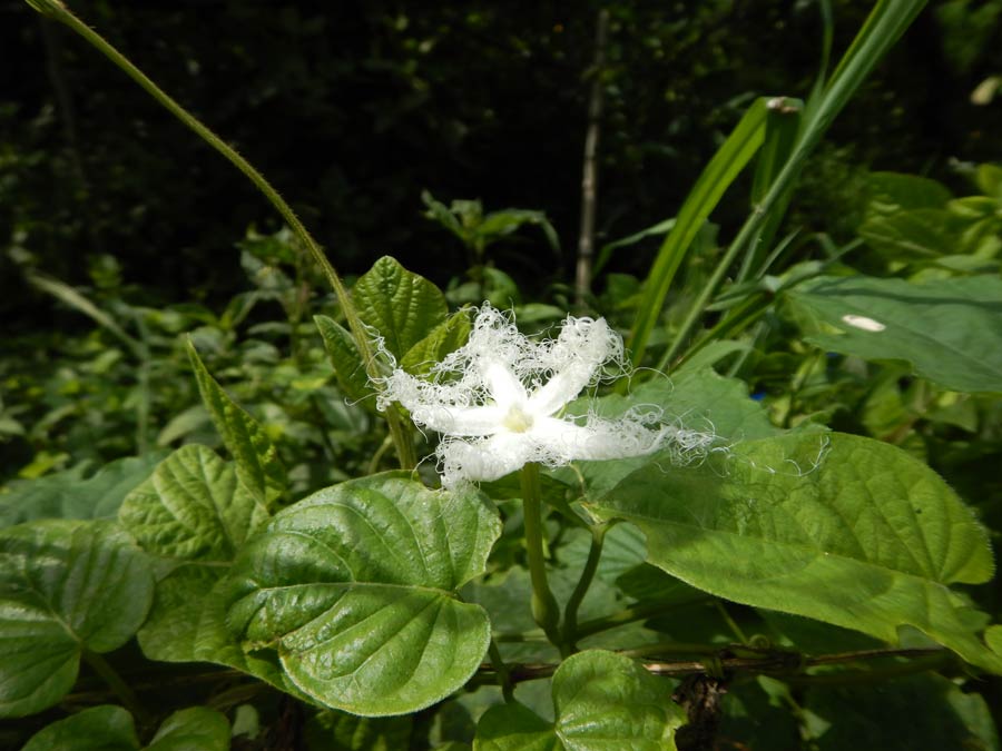 夜のあいだだけ咲くという、カラスウリの花がしぼまずに残っていました。不思議な花です。種も面白い形と色をしているそうなので、冬に赤い実がなったら取ってみようと思います。