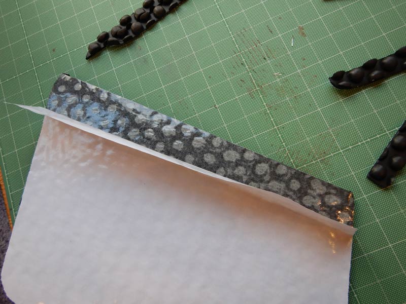 良さそげなので、深く考えずに貼っちゃいます。パッドの裏面をはがして貼りますが、いっぺんに全部ははがしません。基準になる位置のまわりだけを少しはがして、まずは位置決めです。接着面に触れないよう気を付けます。