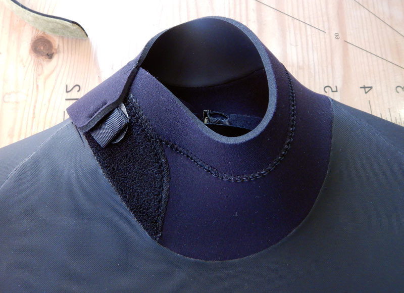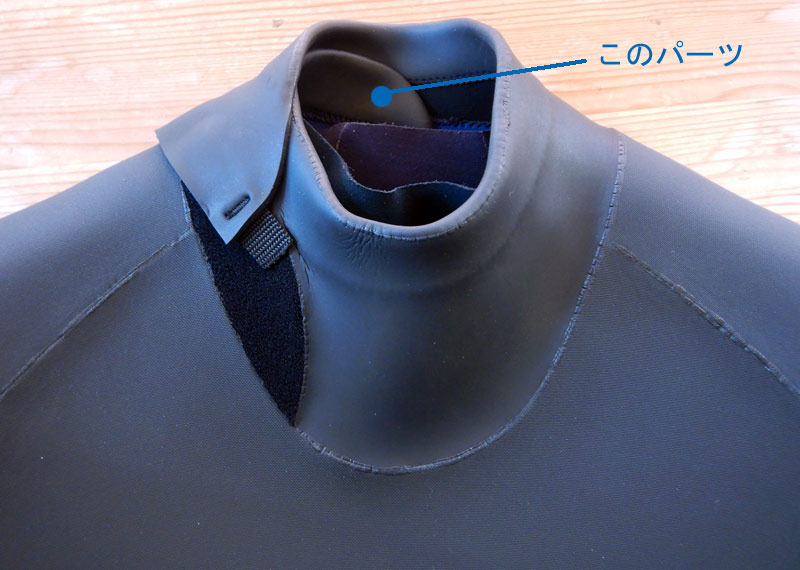 オートジップシステムの首回りは、首の後ろで重なっている部分のパーツが無くなっています。首の後ろがラバー1枚になっています。
