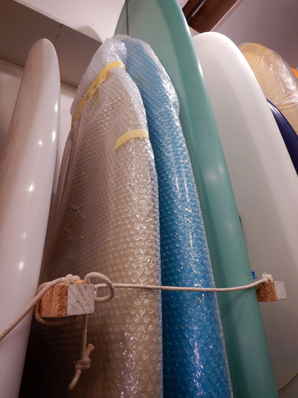 お迎え待ちの二本のTIKI(ティキ)。シングルフィン好きの店主ですが、そんなことは関係ありません。プリモに負けず、サイドフィン付きのTIKIも多いに人気があります。