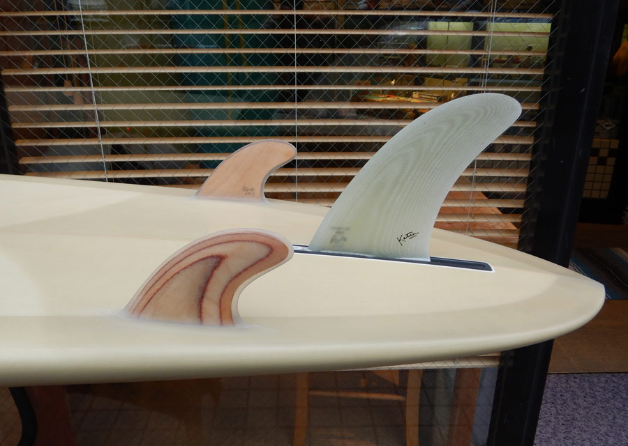 サイドフィン付きのTIKI(ティキ)モデル、パフォーマンスというよりも、大きなラインでのクルージングのためのサイドフィンとボードデザインです。
