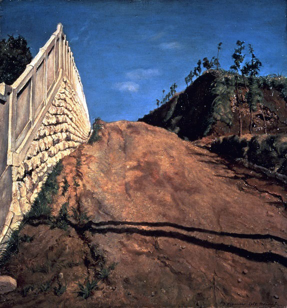 ずーと見たかったのはこの絵です。「道路と土手と塀(切通之写生)」1915年。ネットで借りてきました。
