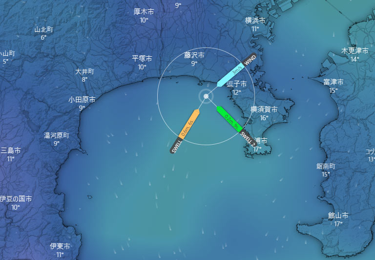 沖で吹いた西風ですこーしだけですが、明日は波がありそうです。沖の西風は北に変わりそうなので、大潮の引きにかけて早めにが良さそうです。ロングボードですね。