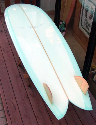 大きなフィッシュが面白いのでクアッド版も作ってみましたが、それが現在もMINI QUADというモデルとして残っています。小波で面白いフィッシュです。それから、クリステンソンにも6’9”でシェイプしてもらっています。2008年です。
