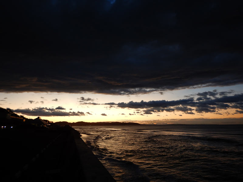 朝6時。今日は快晴の予報ですが、まだ雲が多い。朝日が顔を出しそうな三浦半島です。
