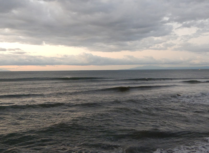 昨日の風は収まってオフショアに変わりました。波はハラくらい。ときおりムネくらいのセットが入ってきます。