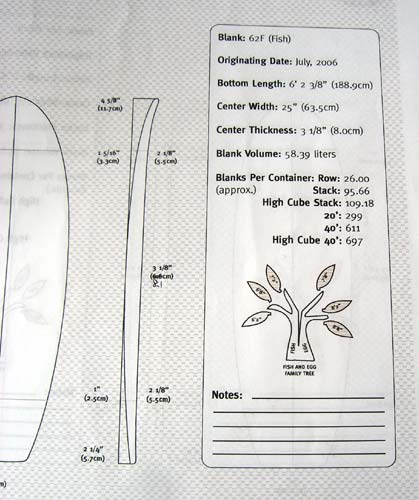 カツさんは相変わらずいろいろな種類のブランクスのテストシェイプに余念がありません。シェイプが楽しくて仕方ないようです。これは新しく日本に入ってきたブランクスメーカーのカタログです。6.2Fフィッシュ用です。ブランクスの種類を現すファミリーツリーが可愛いです。これはフィッシュやエッグ用と書いてあります。
