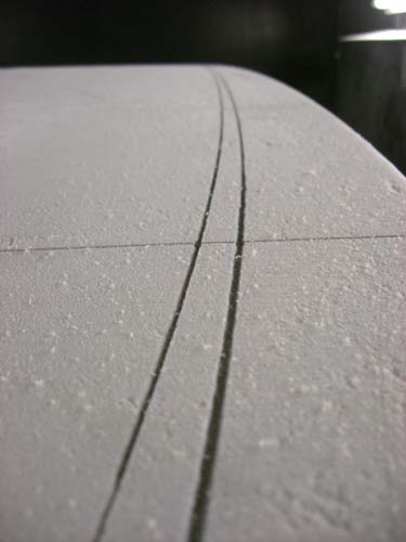 ニューフィッシュといっても私のじゃありません。私の目下の命題は作ってもらったボードに乗り込むこと。ニューフィッシュは先週シェイプルームを出てラミネートに行ってしまったと思っていたNさんのオーダーです。