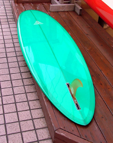 面白いユーズドボードがやってきました。JTサーフボードのカルマです。なにが面白いかっていいますと長さが6’8”あるところ。最初は長すぎるって断られたらしいですが…