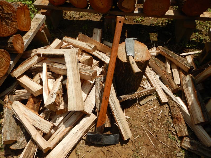 今年は、町田の古道具市で買って磨きなおしたナタが活躍してくれてます。重量がある斧を使うのにはまさに重荷になる、細かい樹の繊維を簡単に断ち切ることができます。