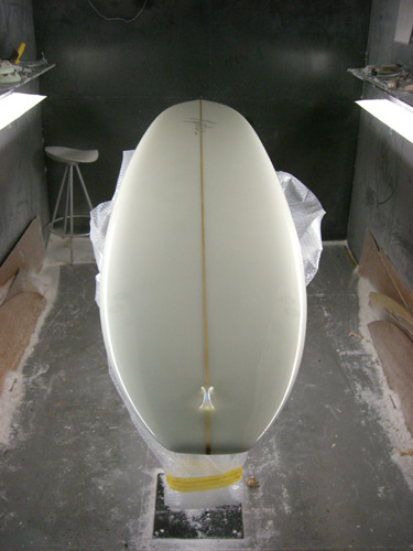 Iさんのオーダーのフィッシュシモン、最後のクラークフォームでシェイプしたそうです。クリスもLUCKY GUY!と言っていました。詳しくはまた後ほどご報告します。