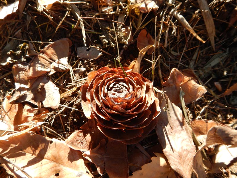 朝食のときに女房が、シダーローズって知ってる?と言うので、話を聞いてみたらどうもヒマラヤ杉の松ぼっくり(杉ぼっくりか?)のことらしく、欲しいというので朝のさんぽがてら探しに行ってみました。