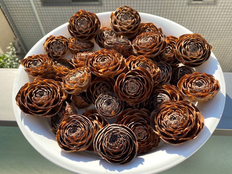 ありました。これがヒマラヤ杉の実です。開いたところがバラの花のようなので、シダーローズと言うらしいです。