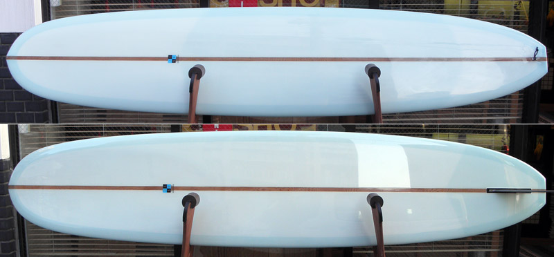 さて、こちらはヒマラヤ杉では無くてアメリカ杉をストリンガーに使ったノーズライダーのユーズドボードです。レッドシダーのストリンガーは今では珍しくなってしまいました。3/4インチ幅のストリンガーは木目もきれいです。