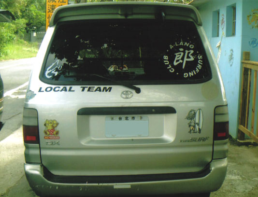 トリップをケアしてくれた現地のサーフチームの車だそうですが、ナンバーの右にどこかで見たような絵が…。