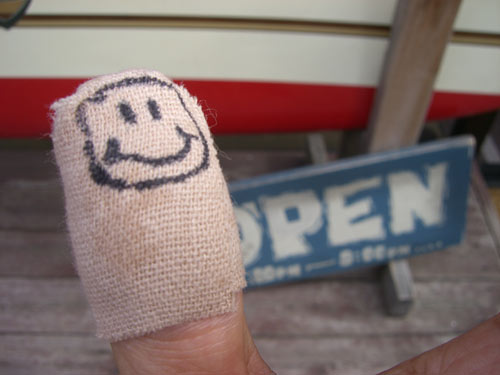 先週の金曜日に大工仕事をしていて、親指の先をのこぎりで切ってしまいました。昨日まで結構痛かったのですがだいぶ修復されてきているようです。今日はキズ保護のため左手だけグローブをして入水しましたが片手グローブ、妙な感じでした。