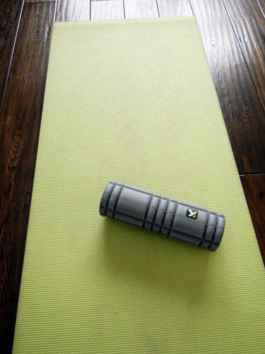 ストレッチの仕上げはこれです。筋膜リリース。ストレッチポールでも出来るのですが、ランニングで多用するフクラハギには少々硬すぎで痛いので、専用のローラーを買ってきました。