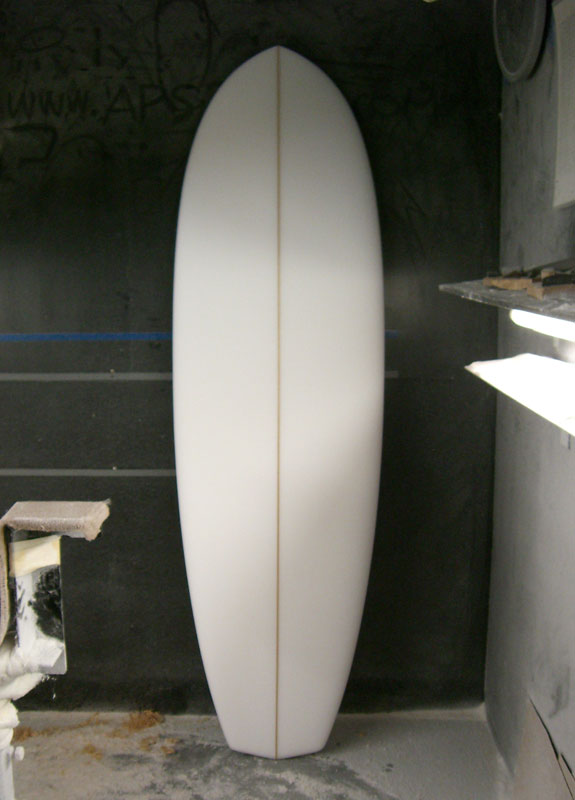 思い出してみればこの手のシェイプは当時、たくさん作っていました。これは自分で乗っていた、6’2”です。