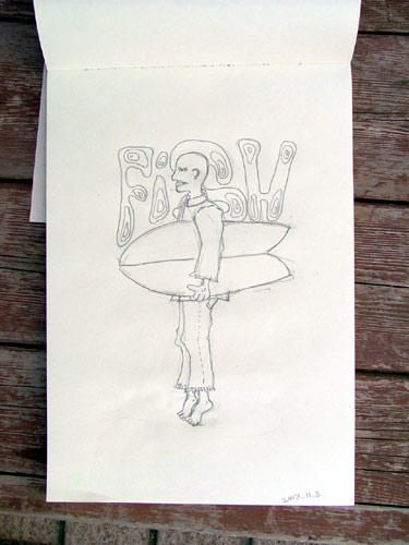 今日はこんな気分? 昔たくさん描いたデッサン帳のペンシル画、フレームに入れてみようと思って探していますがどっかにいっちゃったみたいです。一日一枚、なんでもいいから描くのが目標。絵も波乗りと一緒でコンスタントに描いていないと思い通りのラインを描けなくなります。毎日描いてどうなるかは不明。描きたいだけです。カツさんの5.4とアンドリューの5.8のスモールフィッシュ乗りたいなあと眺めていたときの頭の中のイメージをそのまま描いたのが上の絵です。