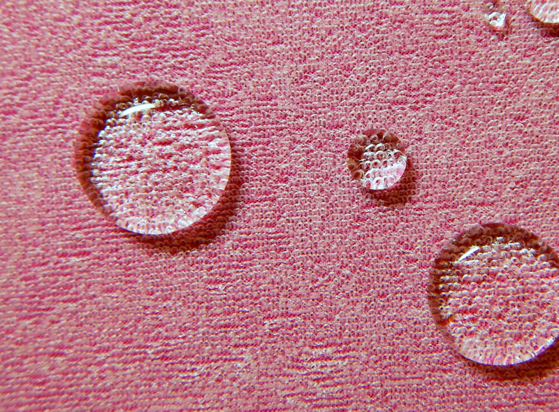 水を垂らしてみたら、見事に弾きました。このエアシュート、起毛素材ですが毛足は短めです。従来の起毛素材とジャージ裏の中間くらいの毛足です。