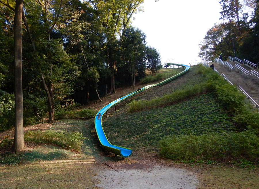 広場やこんな滑り台があって、子供たちが元気に遊んでいます。長い滑り台を小さな子供が凄いスピードで滑り降りてきます。波乗りやスキーもそうですが、自然の力で、顔に風を受けながら斜面を滑り降りるのは本能的に面白く感じるんでしょうね。やっと歩けるくらいの子供が大喜びしながら滑り降りてくるのがかわいい 笑。