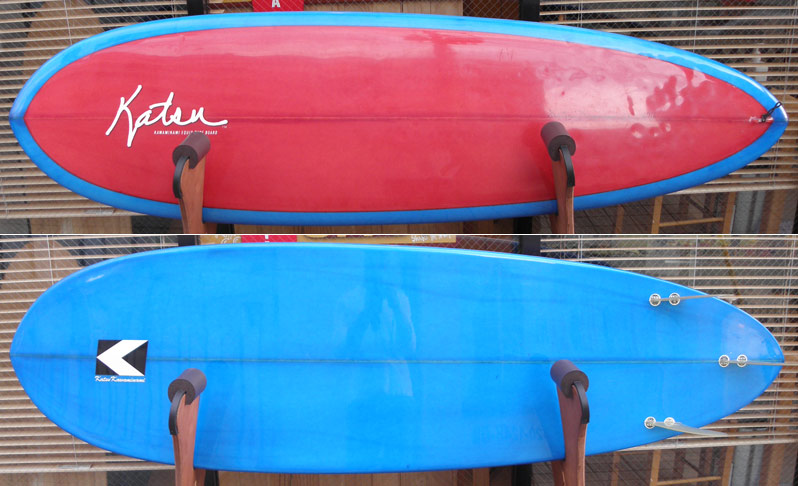 このダイアモンドシングルは私が以前、クラシックなシングルフィンのショートボードが欲しくて、1シングルフィンの時代に調子良かったボードを作ってくださいと活さんに頼んで、出来上がってきたのがこのダイアモンドテールでした。