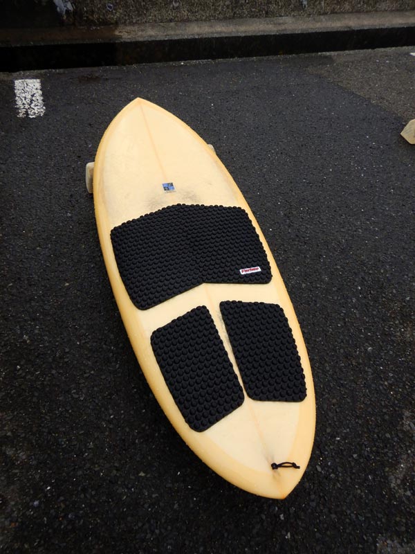 ネガティブな理由のチョイスですが、楽しいのは同じです。このカスタードクリーム色のニーボードはもう1本の5’6”の紫よりも、1インチ長く(5’7”)、全体の幅も広いので緩い波でも良く走ってくれます。