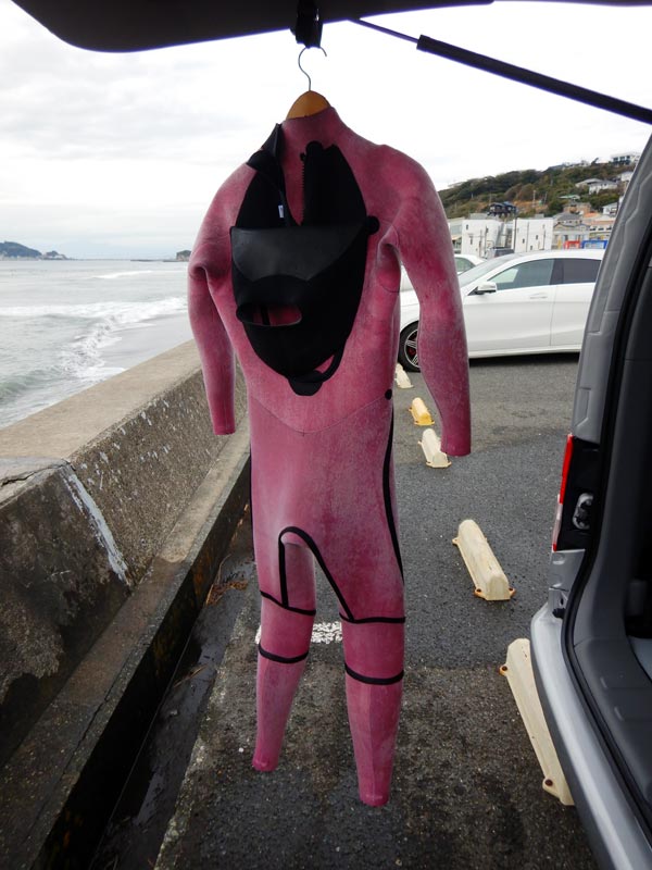 先週は海水がまだ暖かく感じました。いつも入っている人に聞いたら、前日まではこんなに冷たくなかったそうで、急に水温が下がったようです。でっかい氷を入れられたみたいで、届いたばかりのSTEAMERの裏付きじゃなかったら無理でした。選手交代の時期ですね。