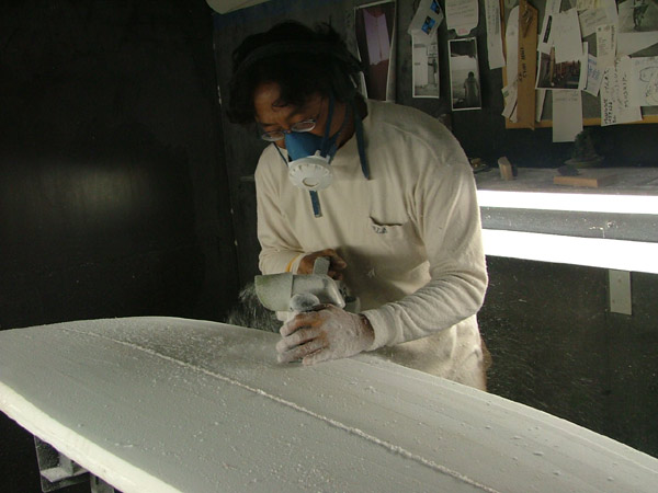 明日木曜は個人的な用事があるので、今日サーフボードの工場へ行ってきました。カツさんは新しいメーカーのブランクスをテストシェイプ中です。最後まで何を削るか悩んでいましたが、いろいろと話ているうちに普通のミニの4フィン(コンケーブ無しです。)をまだ試していなかったことに気がつき、4フィンミニに決定しました。