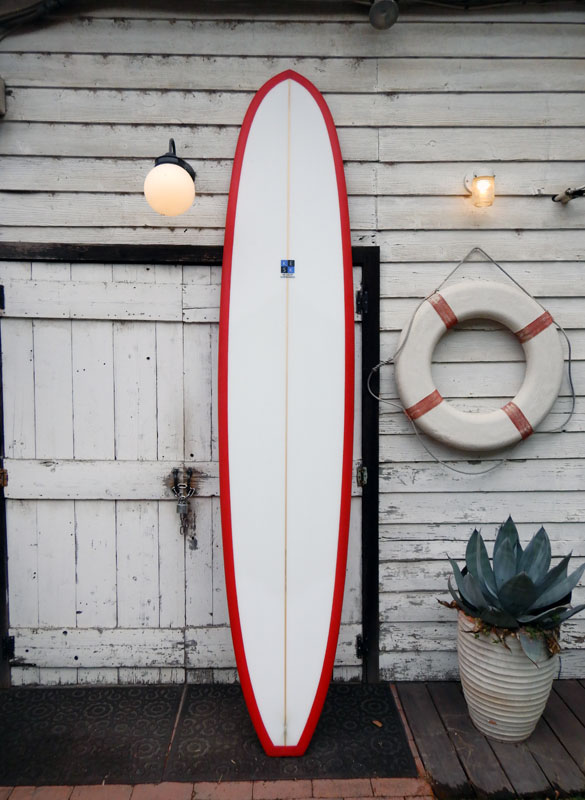 平水面でのパドルの速さと、テイクオフの速さはロッカーやボリュームバランスが関係してくるので必ずしもイコールではありませんが、このボードの滑り出しには驚きました。このボードはこれまで乗ってきたロングボードの中では、かなりスリムな部類です。9’3” x 22”3/4 x 2”7/8のサイズでノーズもテールも絞り気味です。