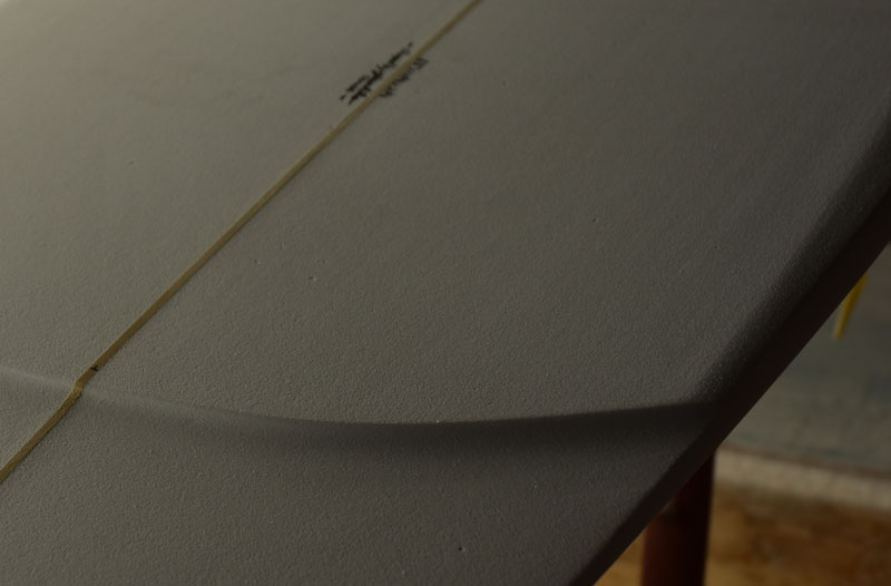 エッジボードのようなレールに、内側のハルのシングルコンケーブの組み合わせ。ステップがきれいです。途中にステップが入いつつもボトムのラインがきれいに流れているのは、シェイパーの技術の高さの証明です。
