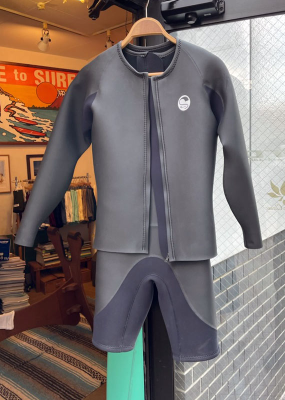 こんなセットアップもOKです。ロンスプと同じ様に使えます。重ね着は動きにくくありませんか?と聞かれますが、それは全くありません。自分で実感していることですが、重ね着でも普通のロンスプと全く同じ着用感を保証します。丸首は水が入りやすいので、気になる方はエリ付きにするのをオススメです。もちろんショートジョンとジャケット単体でも使えます。