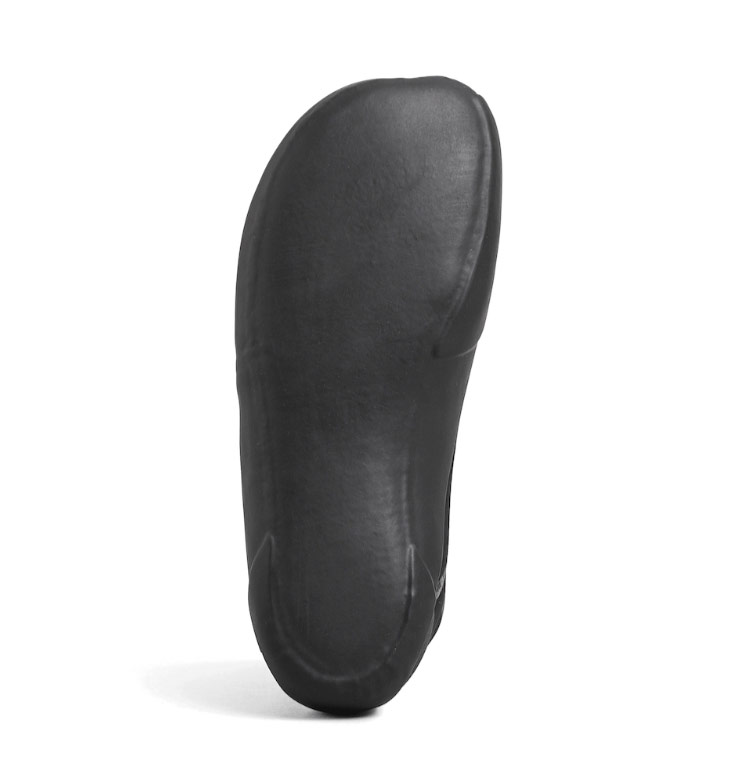 ソール。足の裏です。従来のブーツのようなトレッドは無く、つるりとしたラバーだけです。ラバーなのでこれで滑りませんが、引っ掛かり過ぎもしません。5/6mmのブーツでもサーフソックスの感覚だと、これが評判なのです。