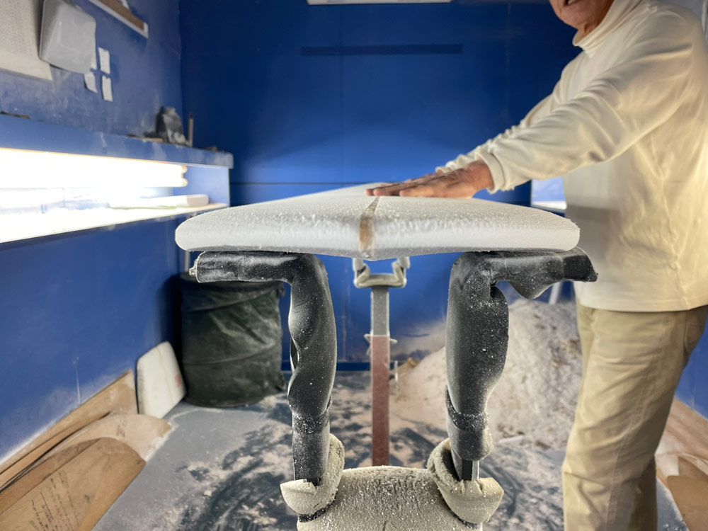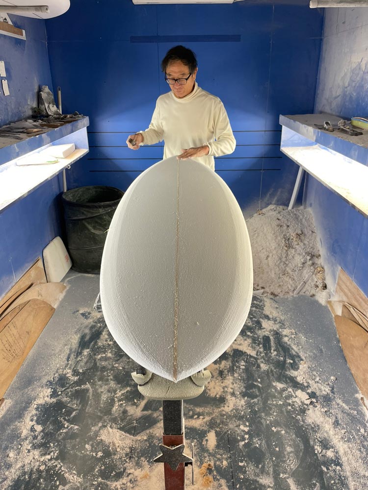 ショップのオープンは2001年。それ以来、ロングボードをベースに、フィッシュ、ボンザー、シングルフィン、ニーボード、パイポとさまざまな種類のサーフボードを作り、試してきました。