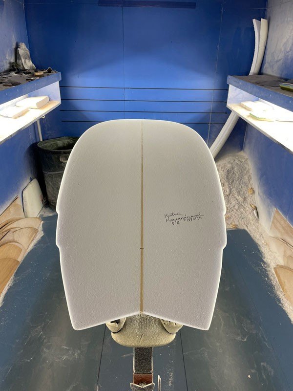 オーダーいただいたニーボードのシェイプが出来上がりました。レングスは5’8”です。ストリンガーを整えて完成です。