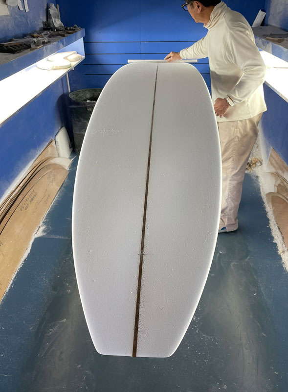 お願いしていた、TOTOのシェイプが出来上がりました。レングスは9’3”。ストックボードです。今のところ、クリアにボランパッチでシンプルに仕上げる予定ですが、ラミネートが始まるまでしばらく時間があるので、やってみたい色が浮かんできたら色を付けちゃおうかとも思ってます。